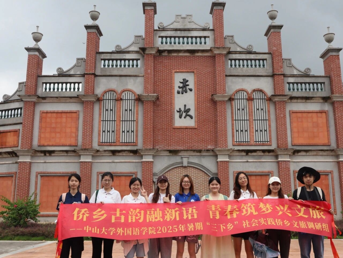 2025年7月10日至13日,多名学员报名参与暑期“三下乡”社会实践活动,组成文旅调研、青年人才宣讲、儿童公益培训三支队伍赴广东开平赤坎镇开展“百千万工程”青年突击队行动。文旅调研组走访碉楼群、侨乡图书馆等场所,挖掘侨乡文化内涵,助力当地文旅发展;青年人才宣讲组走进开平市第一中学,为高三学子分享备考经验与中大招生政策,同时深入社区开展学生资助政策宣讲;儿童公益培训组通过多语种趣味课程,为30余名儿童播下求知种子,开阔国际视野。