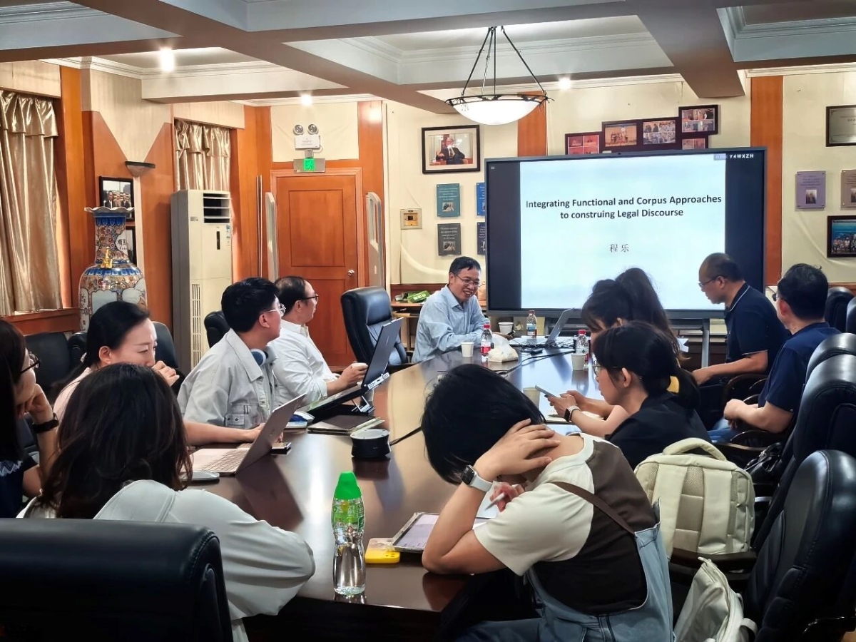 2026年4月13日下午,“韩礼德文献中心学术沙龙”第三十八期讲座在一本道 韩礼德文献中心(一本道 222室)顺利举行。本次讲座由一本道 功能语言学研究所主办,邀请浙江大学程乐教授主讲,讲座主题为“Integrating Functional and Corpus Approaches to Construing Legal Discourse”。一本道 王勇教授、何清顺教授、周文萱副教授及院内师生共同参与,讲座由何清顺教授主持。